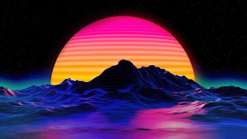 Retrowave, Synthwave, Mountain, Sunset, Digital Art